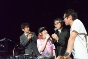 続いてバトンを受け取ったのは、その「東京ブロンクス」をいとうせいこうや藤原ヒロシとともに作った人物である高木完。熟練のDJプレイで、ステージの転換中も観客を踊らせ続けた。DJタイム終了後、せいこうとユースケ・サンタマリアがDJブースに現れ、このイベントのオフィシャルTシャツをデザインした江口寿史や水道橋博士とのトークを披露。さらにシークレットゲストとして