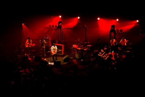 なお曲の合間で繰り広げられるMCは、おのずと思い出話が中心に。岸田が「『アンテナ』を作ってた頃、我々は何歳でした? 28歳? 28の青年たちとしてはかなり渋い音楽を作ってたよな。趣味に走りましたね」と口にすれば、佐藤が「音が“もあもあ”してるよね」と続ける。これを受けた岸田は「今日も誠心誠意込めてもあもあさせていきます」と意気込み、ディープな世界へと誘う「Hometown」や「黒い扉」などをプレイした。