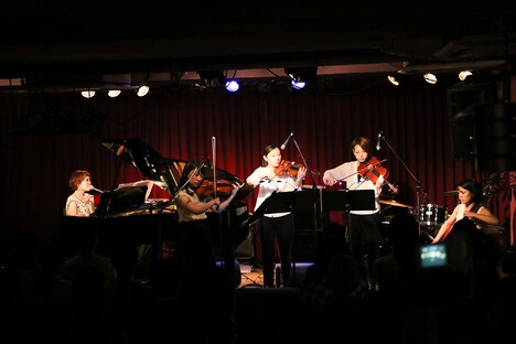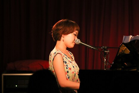 満員の観客の拍手に迎え入れられた辻林はグランドピアノの前に座ると、2本のバイオリン、ビオラ、チェロからなる弦楽カルテットともに「あさひ」「あぶく」「うそつき」「きみととく」と、「Clarte」収録曲の中でもメロウな楽曲を披露。前髪を切りすぎた自身に「なんかオーガニック好きのババアみたいになっちゃってますね」と照れ笑いを浮かべるコミカルなMCを挟みつつ、透明感あふれる歌声を7th floorいっぱいに響かせた。