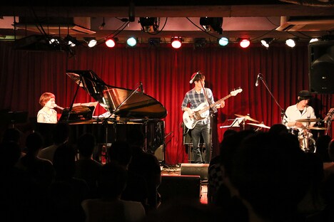 そして5曲目「Paranoia」からは「Clarte」のプロデュースを手がけた石井マサユキ(G / TICA、GABBY & LOPEZ)らを招き入れ、バンドセットでステージを繰り広げる。1980年代シティポップテイストの「Paranoia」や、スウィンギンな「Parallel Love」、トイミュージックライクな「bora zoo」などスムーズながらもどこかストレンジな楽曲を確かなテクニックで聴かせると、辻林は「アルバム1枚分しか持ち曲がないから時間が保たないんですよ」と苦笑い。「大貫妙子の歌声が好きすぎる」と語るシュガー・ベイブ「いつも通り」や、「コードが鬼難しいけど、いつかカバーしたかった」冨田ラボ feat. ハナレグミ「眠りの森」、自身もレコーディングに参加した檸檬の「夢のまた夢」という3曲をカバーして、オーディエンスの大きな拍手を集めてみせた。
