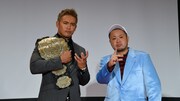 新日本プロレス「WRESTLE KINGDOM 11 in 東京ドーム」のメインイベントに出場するオカダ・カズチカ(左)と、同大会のテーマソングを担当するサイプレス上野。