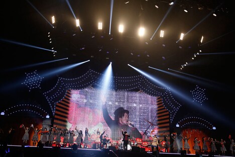 最後に登場したナオト・インティライミはスーツにシルクハット、手にステッキを持ってステージへ登場。ステッキをギターに持ち替えると「いつかきっと」を1曲目に届けた。彼は青い光に染まった客席を感激の面持ちで見つめ「こんなに素敵な皆さんと、ハロウィンという“オマットゥリ”を盛り上げることができてうれしいです」とつぶやく。「Overflows~言葉にできなくて~」を弾き語りで歌うと、ナオトは「最後、“オマットゥリ”しようか?」と客席に呼びかけてアッパーチューンを連投。「The World is ours!」で花道を駆け抜け、サインボールを次々と客席へ蹴り入れながらのコール&レスポンスで観客をヒートアップさせると、続く「おまかせピーターパン」ではガイコツ姿のバックダンサーと激しくダンス。ラストの「カーニバる?」では欅坂46、まこみな、安村アナもタオル回しに参加し、ステージ上は文字通りのカーニバル状態となった。“オマットゥリ男”の本領を発揮してトリを務めあげたナオトは「ハッピーハロウィーン! みんな最高だった!」と絶叫し、この日のステージを締めくくった。