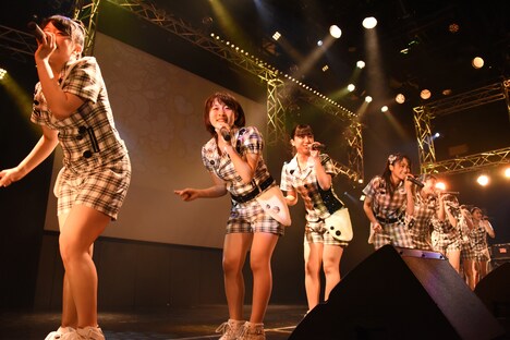 今回のイベントのラストを飾るこぶしファクトリーは、フロアがペンライトの光で埋め尽くされる中「押忍!こぶし魂」で勢いよくライブを始める。「チョット愚直に!猪突猛進」で力強い歌声を披露した彼女たちは、広瀬彩海の「みなさん私たちに付いてきてくださいね!」のMCから、「愛はいつも君の中に」「恋の呪縛」を立て続けに歌唱。「すっちゃかめっちゃか」では観客とコール&レスポンスを繰り広げ、場内にはファンの声が響きわたった。さらに井上玲音が「それではラストスパート! みなさん盛り上がる準備はいいですか!?」と煽ると、彼女たちは「急がば回れ」をパフォーマンス。「ラーメン大好き小泉さんの唄」で「麺上げて!湯を切って!ラーメン大好き小泉さん!」のかけ合いで会場の熱をピークに高めると、「念には念」を熱唱した。