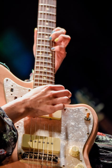 続くブロックではサポートのgomes(Key)とReiの2人で「Cinnamon Girl」「eutopia」「The Day」が届けられる。温かなランプが照らす中、gomesによるキーボードとReiの奏でるアコースティックギターの音色が息ぴったりに重なり合っていた。gomesがはけ、再度片山と玉木を迎えたReiはスモークが焚かれる中、インストゥルメンタル「POMELO」をじっくりと演奏したのち、「Long Way to Go」でダイナミックな歌声を披露して観客を引き付けた。