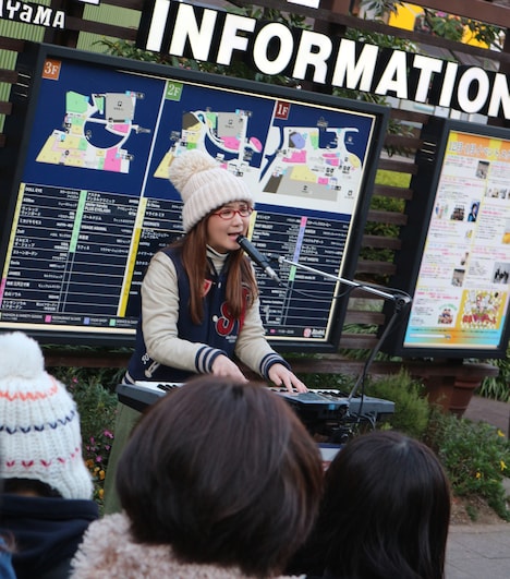 16時頃になると金山駅前に奥が登場。メジャーデビュー曲の「やさしい花」を皮切りに「変わらないもの」「ガーネット」といった代表曲が演奏されると、通行人が足を止め次第に人だかりができていく。途中でアンプの不具合により音が出なくなるアクシデントに見舞われるも、奥はそれを吹き飛ばすかのようにパフォーマンスを続けた。