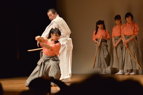 各時限でメンバーは事前のレッスンで身につけた振り付けをおさらい。神谷氏と松木氏に改めてポイントを習う。その後、彼女たちはさくら学院の楽曲「メロディック・ソルフェージュ」を題材に、模擬刀を使って舞を披露。パフォーマーを交えた迫力のある舞で父兄を大いに沸かせた。