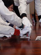 メンバーは当日12:00から業者による講習を受け、12:30より刻印を開始。この日は4人で1万枚を目標に作業を進め、4人はジャケットとCD封入のカードの2カ所にシリアルナンバーをスタンプしていった。