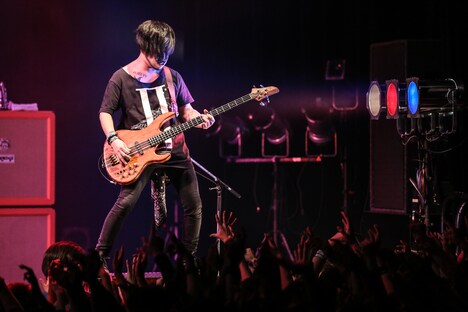 和やかな雰囲気から一転、「Tomorrowland」でライブ後半に突入すると4人のパフォーマンスは激しさを増していく。Hiroが「お前らが束になっても負ける気がしねえよ。だって俺らが今一番最高に楽しんでるからさ! かかってこい!」とオーディエンスを挑発し「虚言NEUROSE」を投下すると、フロアにはダイバーが続出。「The Puzzle」「失踪FLAME」ではKid'z(Dr)の力強いドラミングを背にTeru(G)とNob(B)がステージを縦横無尽に動き回り、迫力のステージングを繰り広げた。Hiroが「この5年は皆さんに支えてもらった5年間でした。これから5年で返していくから。俺、みんなとなら行けるって信じてる。だってお前ら、ストーリーテラーだろ?」と観客に語りかけたあと、彼らは本編最後に「不可逆リプレイス」を演奏した。