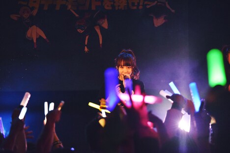 またアンコールでは、雨宮伊織が初めて作曲を手がけ、さらに初めてメンバーのみで作詞に挑戦した新曲「back stage」を披露。雨宮は「“そばにいて この夢が叶うとき”という歌詞があるんですけど、まさにこのときのことだなあと思いました」と涙ぐみ、最後のサビでは「光の海へ」という歌詞に呼応して会場がカラフルなサイリウムの光に包まれた。