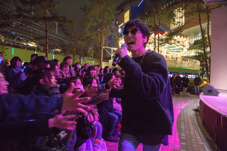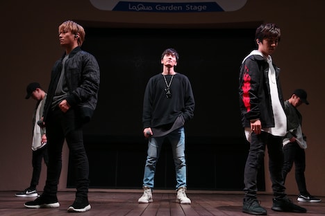 定刻を迎え3人が姿を現すと会場は盛大な歓声に包まれる。「Boom Word Up」でフリーライブが始まるとバックダンサーもパフォーマンスに加わり、彼らはキレのあるダンスでファンを魅了する。「Drop Drop」では橘慶太(Vo)が客席まで降りていき、最前列のオーディエンスとハイタッチ。客席からは歓喜の声が上がり、ライブが進むにつれて会場周辺の人だかりはどんどん大きくなっていった。