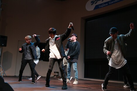 ライブ終盤のMCでは、会場に隣接する東京ドームで「World Baseball Classic」の試合が行われることを受け、サイン入りのカラーボールをプレゼントすることに。3人はプラスティックのバットを使って16個のボールを打ち、ファンを喜ばせた。計5曲を歌い、記念撮影を終えたあとに千葉涼平(Cho, Rap)は集まった観客に向けて「みんな大好きだよ」と語りかけ、デビュー記念日のイベントの幕を閉じた。