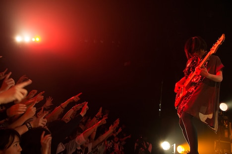堀之内のテクニカルなドラムプレイが光る「初恋」では、さらに弓木がライトハンドタッピングでオーディエンスを熱狂させる。「な。弓木さんすごいだろ」と観客に語りかけた小出は、「演奏もそうだし、人柄もそうだし、本当に弓木さん最高でした。4カ月間ありがとうございました。弓木さんの人柄を好きになればなるほど『弓木さんの現場がうちでいいのかな』『弓木さんの今後の糧になるようなもの、なんかあげられてるかな』って。いろんなバンドのサポートを務める“たびがらす”の弓木さんが、Base Ball Bearっていう“道の駅”に立ち寄ったときに『このバンド、なんかいいなあ』って思ってもらえたら幸いです」と彼女への思いを述べる。またこの日のMCでは、初めてメンバーで宿泊先のホテルにて“部屋飲み”をしたことなど、ツアーの思い出トークも繰り広げられた。