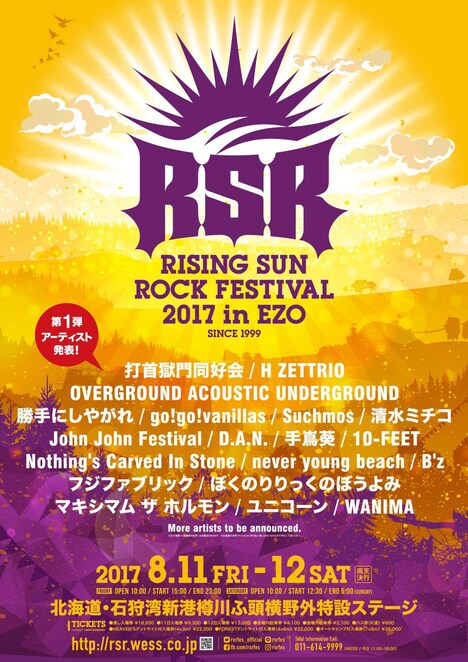 8月11、12日に北海道・石狩湾新港樽川ふ頭横野外特設ステージで行われる野外ロックフェス「RISING SUN ROCK FESTIVAL 2017 in EZO」の出演アーティスト第1弾が発表された。