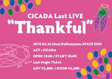 これは彼らが本日4月13日に大阪・北堀江club vijonにて出演したライブ「【松FUJI ROCK FES'17】~vijon15周年の年第一弾。CICADA新体制初大阪の巻~」にて発表したもの。バンドは4月20日に東京・UNITで行われるキャリア3度目となるワンマンライブ「CICADA One man show "Absolute" 2017」のほか、「GREENROOM FESTIVAL '17」「YATSUI FESTIVAL! 2017」といったイベントへの出演を控えている。
