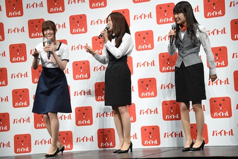 乃木坂46は求人情報サイト「バイトル」の新しいイメージキャラクターに就任。5月8日(月)より、メンバー出演のCM「アプリダンス篇」と「かわいい制服篇」が全国でオンエアされる。発表会はこれを記念して行われ、登壇した3人はCM撮影を振り返りながらトークを繰り広げた。