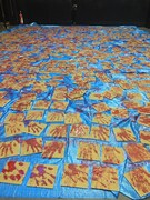 ジャケットの素材は砂紙で、メンバーが手作業および足作業で赤い液体をかけて模様を付けた一点物のデザインとなっている。