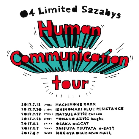 「Human Communication」は彼らが不定期で実施していた自主企画イベントのタイトル。今回はバンドが新たな出会いを求めるために、「行ってみたい土地」を舞台に、対バンツアー形式で行われる。ツアーは7月18日の青森・八戸ROXXから8月9日の愛知・DIAMOND HALLまでの計8公演。出演者は追ってアナウンスされる。GEN(B, Vo)は今回のツアーについて「初めてやるバンドや、ずっとやれてなかったバンドを誘いました」「セトリも新旧問わず自由度高めになりそうです」とコメントしている。