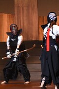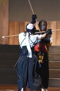 公開稽古では彼女たちは華麗ななぎなたさばきを披露。さらに迫真の演技も見せていた。