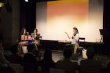 トークショーの第1部に登場したゲストはプロインタビュアーの吉田豪。青田はインタビューの極意を聞くはずが、逆にインタビューされてタジタジになってしまった。