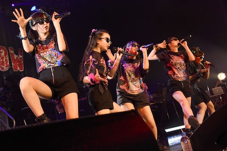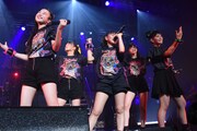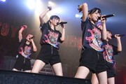 彼女たちは最初に「六甲たこおろし」を披露。ライブ終盤に届けられることの多いこの曲を1曲目に届けて一気にフロアのボルテージを引き上げる。続く「じゆう!そう!フリーダム」ではバンドのソウルフルな演奏に堀くるみと根岸可蓮がパワフルなシャウトを乗せて虹家族の歓声を誘った。