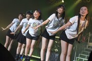 3曲目「絶唱!なにわで生まれた少女たち」の自己紹介パートでサングラスを外した5人は、最初のMCでそれぞれに力強く虹家族を煽る。彩木咲良は「このメンバーと虹家族で一番最高の虹革命起こすぞ!」と叫び、続く「レインボーレボリューション」ではエネルギッシュにステージ上を動き回った。「たこ虹物語~オーバー・ザ・関ケ原~」では会場を2つのブロックに分けた「たこやき」「レインボー!」のコール&レスポンスでフロアの熱気が一層高まっていく。また彼女たちはZepp Nambaで迎えたツアーファイナルに感激の面持ちで、堀は「私たちがお披露目イベントをしたのが、すぐ隣にあるヤマダ電機なんですよ」と懐古。彩木が「最初はみんなお揃いの赤いポロシャツやったよな? 490円の!」と続くと、堀は「それが今はこうやってTシャツを作ってもらって、いろいろかわいくアレンジしてもらって……」と、しみじみとした様子で語っていた。