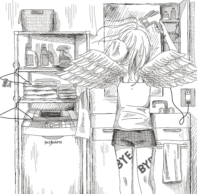 「BYE BYE」はSHISHAMOの通算6枚目となるシングル。ジャケットイラストは宮崎朝子(G、Vo)が描き下ろした。