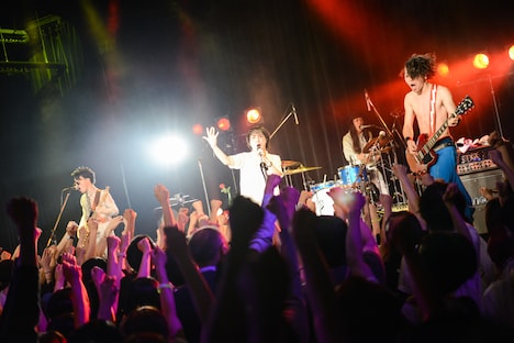 「もっと行こうか!」と声を上げた下川は「人類」をまくしたてるように歌唱。夏目の煽りによりオーディエンスは「オイ! オイ!」と拳を突き上げ、場内は熱気で包まれる。さらに下川に「中指をケガした男!」と紹介されたアベは、爪が剥がれたため包帯が巻かれた中指を立てながらフロアを見つめた。彼にパワーを送るべくオーディエンスが手を挙げた「念力が欲しい!!!!!~念力家族のテーマ~」では、パワーを受け取ったアベが「痛えー!!」と叫びながらアグレッシブに指弾きをしてみせた。