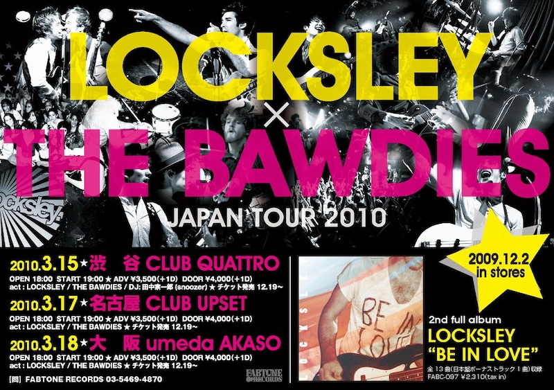 「LOCKSLEY × THE BAWDIES JAPAN TOUR 2010」と題されたこのツアーは3月15日の東京・渋谷CLUB QUATTROからスタートし、17日に愛知・池下CLUB UPSET、18日に大阪・UMEDA AKASOの3会場で展開。東京公演には雑誌「snoozer」編集長・田中宗一郎がDJとして参加し、2組の対バンを盛り上げる。チケットは12月19日より一般発売開始。