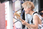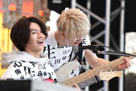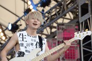 橘柊生(Fling Dish, Rap, DJ, Key)が「どうも皆さん、DISH//です! 皆さん、踊り狂う準備はできてますか!」と言うと、小林龍二(Rap, B)が力強く響かせるベースを合図に続く「FREAK SHOW」へ。柊生と龍二によるラップと匠海、矢部昌暉(Cho, G)のボーカルが巧みに絡み合うこの曲で確かなアンサンブルを聴かせると、オーディエンスは手を挙げて彼らの熱演に応えた。MCでは泉大智(Dr)の叩くドラムのリズムに乗せておなじみの自己紹介が届けられ、柊生は「やったぜ! 今年もめざましライブだ!」と昨年に続くイベント出演に笑顔を見せる。ここで匠海が「すげえ夏なので、ちょっと懐かしめの、夏らしい曲を持ってきました」と言うと、彼らは2年前に発表したサマーチューン「イエ~ィ!!☆夏休み」をパフォーマンス。バンドスタイルで届けられるこの曲は匠海の艶っぽいボーカルも相まってリリース当時よりぐっと大人っぽさを増し、スラッシャー(DISH//ファンの呼称)も気持ちよさそうに身体を揺らした。