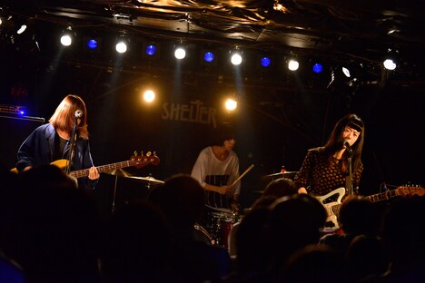 続いて登場した羊文学は、10月4日リリースのデビュー作「トンネルを抜けたら」の収録曲を中心に、未発表の新曲も披露。シンプルかつ個性的なバンドサウンドに乗せて、塩塚モエカ(Vo, G)がアンニュイながら力強い歌声でメランコリックな世界観を作り出す。春ねむりは塩塚の大学の先輩で同じサークルに在籍していたが、春は塩塚と入れ違いでサークルを辞めていたとのことで、塩塚は「『ヤバい奴がいた』っていう情報だけ聞いてたからそう思ってたんだけど、ねむりさんが前にやってたバンドと対バンして初めて会ったら、ヤバいんだけどヤバくない人でした」と春との初対面の思い出を振り返った。