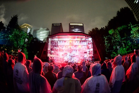 ライブではステージの両サイドに茂る森林に映像を投影。さらに森林に照明やストロボを設置し会場全体を光で包み込むといった演出が取り入れられた。
