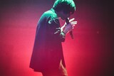 演奏するぼくのりりっくのぼうよみ+SOIL & "PIMP" SESSIONSさんを覗く女性。