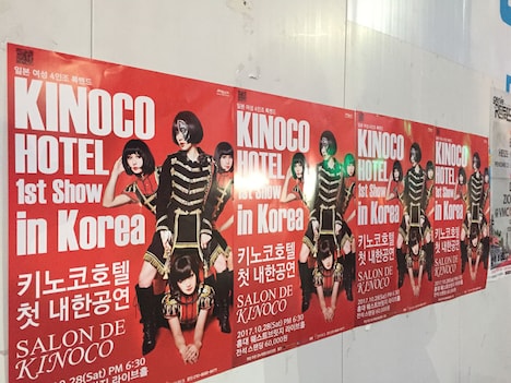 キノコホテルが韓国で単独実演会を行うのは今回が初めて。彼女たちにとっては台湾、マカオに続く今年3度目の海外公演となった。キノコホテル支配人・マリアンヌ東雲(歌と電気オルガン)は「オソセヨー」と韓国語で挨拶したが、逆に現地の胞子たち(キノコホテルファンの呼称)からは日本語による声援が。4人は最新オリジナルアルバム「プレイガール大魔境」の楽曲を中心に、日本での実演会と同様の濃厚なパフォーマンスを約2時間にわたって繰り広げた。