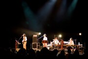 定刻を少し過ぎた頃、ステージ上にメンバーが登場。このツアーの編成は岸田繁(Vo,G)と佐藤征史(B)のほか、サポートメンバーにボボこと堀川裕之(Dr)と世武裕子(Key,Cho)を迎えた4人編成。全員アースカラーを基調としたシックな装いで現れた。