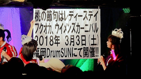 「のびしろ行進曲」では、もはや恒例となった希山愛の早口パートでのサプライズ告知が行われた。早口言葉のお題として出されたカンペを彼女が読み上げる形で3月3日に福岡・DRUM SONにて女性限定ライブ「桃の節句はレディースデイ~フクオカ、ウイメンズカーニバル~」の開催が決定したことがアナウンスされると、メンバーは驚きながらも「女の子にかわいいって思ってもらえるようなライブをしたいね」と話した。