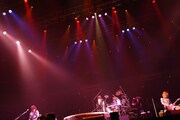 セッションコーナー第2弾ではSATOち(ムック)、ゆうや(シド)、そしてyukihiroによるドラムバトルが展開。転換中にドラムセットが3台ステージ上に並べられるとどよめきが沸き起こり、スクリーンにそれぞれの顔が浮かび上がると、予想外のラインナップに喝采が会場に響いた。3人は息を合わせながらエネルギッシュなドラミングでオーディエンスの耳を釘付けにしていき、ラストは会場を激震させるような乱打でセッションを締めくくった。
