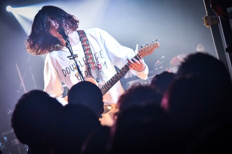 本公演はすでにミュージックビデオが公開されているナンバー「まるくなった」でスタート。バンド編成で登場したDOUBLE SIZE BEDROOMは、ライブ当日にリリースされたばかりの会場限定CD「nippon」よりアグレッシブなナンバー「頭文字T」や、最終少女ひかさの楽曲「人生」「B」「ハローアゲイン」などを織り交ぜたセットリストでアンコールを含め全15曲を披露した。