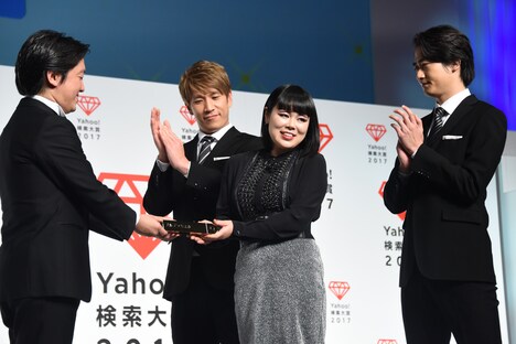 「Yahoo!検索大賞」は、検索サービス「Yahoo!検索」のデータをもとに、前年と比べて検索数が最も急上昇した人物、作品、製品を選出して表彰するイベント。パーソンカテゴリー受賞者の中から選ばれる「大賞」および「お笑い芸人部門賞」にはブルゾンちえみが輝き、「俳優部門賞」は高橋一生、「ミュージシャン部門賞」は安室奈美恵が受賞。「アイドル部門賞」には欅坂46が2年連続で選出された。