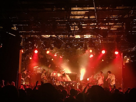 HALFBYによるDJタイムを経て、Homecomingsがステージへ。まずは「PERFECT SOUNDS FOREVER」「LIGHTS」などきらびやかでダンサブルなナンバーでフロアの熱気を上昇させた。続いて、最初のゲストであるEnjoy Music Clubが現れ、畳野彩加(Vo, G)のラップが印象的な「クリスマスをしようよ」や「そんな夜」をセッション。Enjoy Music Clubのメンバーが去ったあとには、DJみそしるとMCごはんがステージに登場し、Homecomingsとの共作曲「恋はコメ色」をパフォーマンスした。おみそはんは「ホムって言ったら、カミって言えー」とコール&レスポンスを繰り広げ観客を煽っていた。