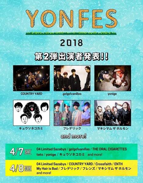 フォーリミ主催「YON FES」第2弾でyonige、キュウソ、ホルモンら6組 - 音楽ナタリー https://t.co/18PlZ7YQMi
