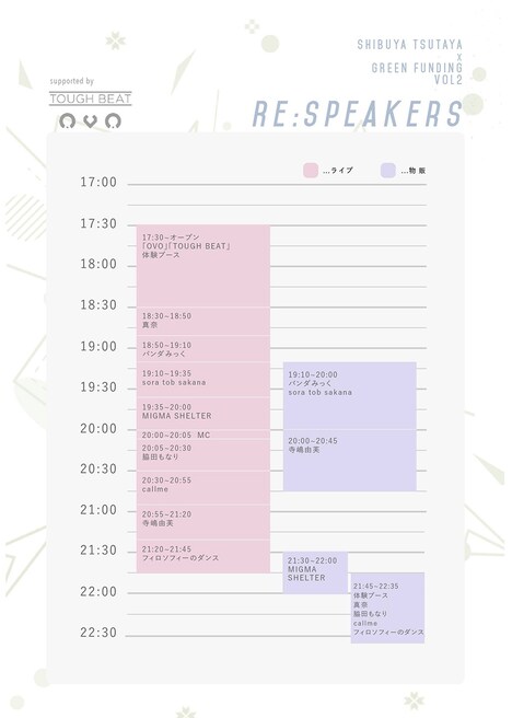 SHIBUYA TSUTAYA × GREEN FUNDING 第2弾ライブ「Re:speakers」supported by OVO / TOUGH BEAT