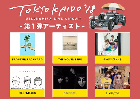 4月30日に栃木・HEAVEN'S ROCK Utsunomiya VJ-2、宇都宮HELLO DOLLY、MATSUGAMINE COFFEE BUILDINGの3会場で行われるサーキットイベント「TOKYO KAIDO'18」の出演アーティスト第1弾が発表された。