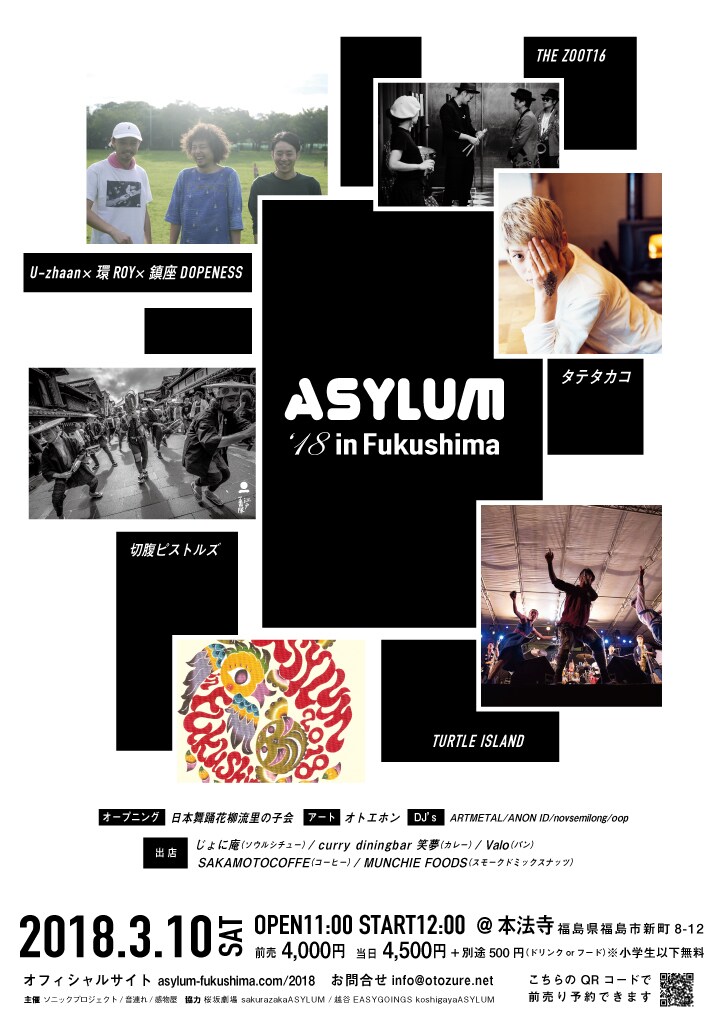 ライブイベント「ASYLUM2018 in Fukushima」が3月10日に福島・本法寺で開催される。