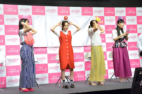 そしてプロジェクトの概要を説明する清野アナから促される形でステージ上の幕を降ろし、「防臭ヒロイン ももいろデオドラントZ」のロゴを見たももクロは少しずつ状況を理解し始める。「汗ニオわせないZ体操(仮)」について、ラッキィ池田は「この体操によって、堂々と楽しく元気にさりげなく臭いをチェックしてもらえればと思います」と紹介し、ふかわは「名曲の匂いがしています。特にト音記号からいい香りがしてきました」とコメント。ニイルセンは「新キャラを入れられたらいいなと考えています」とオリジナルパッケージ商品のアイデアを述べ、