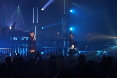 アンコールは力強いバンドサウンドと壮大な歌声が響き合う「最期の川」で始まった。さらに「Why」を披露したあと、堂珍はファンに向けて「6月20日にニューシングルをリリースすることが決定しました」と発表し、大歓声を浴びた。ここで2人はこのニューシングルから「Heaven Only Knows」を早くも初披露。哀切なメロディが印象的な、CHEMISTRYらしさにあふれたミディアムチューンで観客を酔わせると、堂珍は「自分で言うのもなんですけど、ケミケミしい曲ですね(笑)」と新曲のテイストを表現していた。