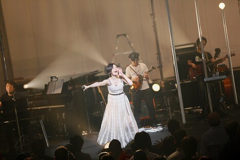 河野伸(Key)、佐野康夫(Dr)、大神田智彦(B)、今堀恒雄(G)、石成正人(G)、稲泉りん(Cho)、高橋あず美(Cho)の演奏をバックに、坂本は「ハニー・カム」「マメシバ」「夜」といった懐かしい楽曲から、最新シングルのカップリング曲「レコード」まで幅広い選曲で歌声を届けていく。河野、今堀、石成のギタレレなどを使用した「夜明けのオクターブ」のインストを挟み、セクシーなベージュのドレスから鮮やかなブルーのミニドレスに着替えた坂本は「Million Clouds」「ロマーシカ」を披露。MCでは海外公演について触れ、「初めての海外公演だったんですけど、ものすごく喜んでいただけて。もう何を言っても笑ってくださるし、甘やかされちゃって」と笑顔で振り返った。