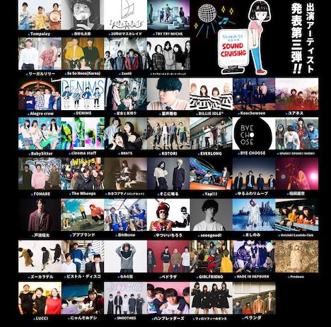 5月26日に東京・下北沢のライブハウス17会場を舞台にしたサーキットイベント「Shimokitazawa SOUND CRUISING 2018」が開催される。本イベントの出演アーティスト第3弾が発表された。