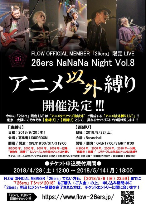 FLOW OFFICIAL MEMBER「26ers」限定ライブ 26ers NaNaNa Night Vol.8「アニメ以外縛り」