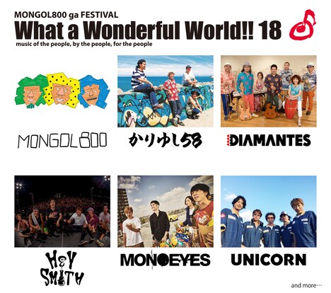 - What a Wonderful World!! 18|MONGOL800主催の夏フェス。沖縄県 豊見城市 豊崎 美らSUNビーチ特設会場 にて開催!