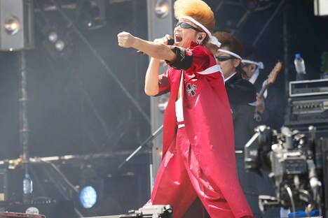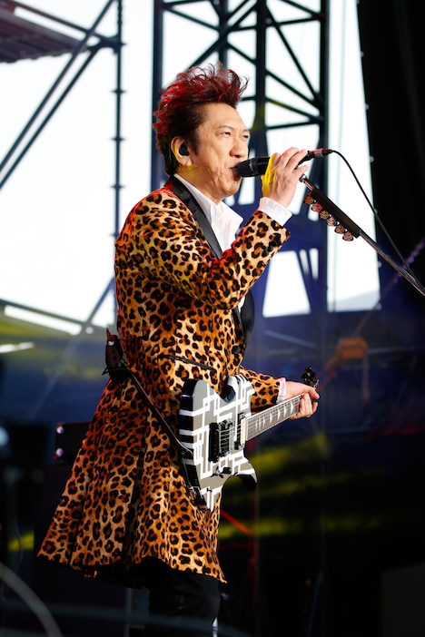 ピンクのトラ柄のジャージを肩にかけ、上機嫌で登場したZIGGYの森重樹一(Vo)。彼は「hideと魂のセッションをしに来たぞ。付き合ってくれるか?」「最高のロックンロールを聴かせてやるよ!」と宣言し、パンキッシュでポップな「TEENAGE LUST」やバラード「君の笑顔より美しい花を知らない」といった今年に入って発表した楽曲を歌い上げていく。さらに中盤ではhideの「ピンク スパイダー」を、hideのぬいぐるみを手にシャウト交じりに熱唱。気迫のこもったパフォーマンスにオーディエンスは惜しみない拍手を送り、そのあとに続いた「GLOLIA」では森重と一緒に大合唱を繰り広げ、幸せな一体感を作り出した。